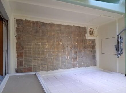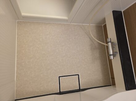 主に在来浴室のタイル壁や天井に浴室パネルを直接貼るだけのリニューアル工法です。壁を壊したりする工事は不要。もちろんユニットバスの壁面にもOKです。