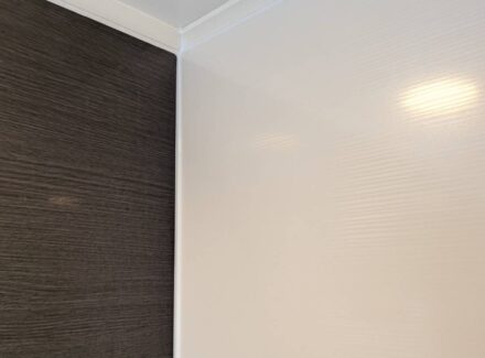 主にユニットバスの壁面や天井(塩ビ鋼板)の上に直接貼るだけのリニューアル工法です。タイル面に貼れるタイプもあります。