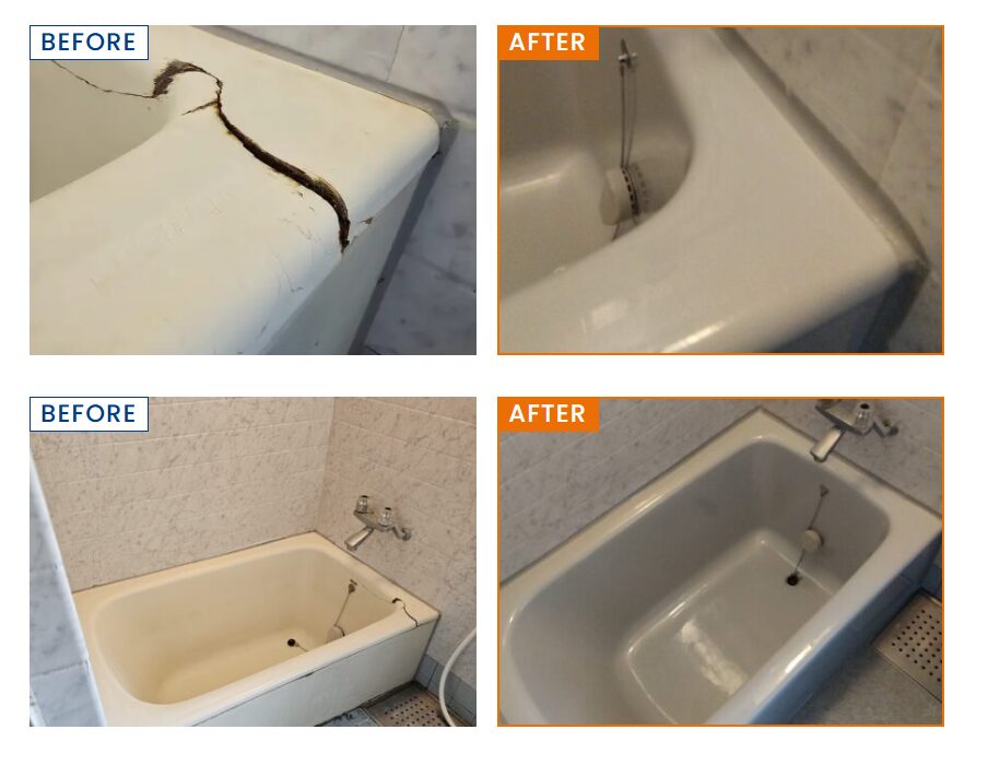事例2:マンションのホーロー浴槽ひび割れ補修|浴槽ふちを2日でオイスターホワイトに再生