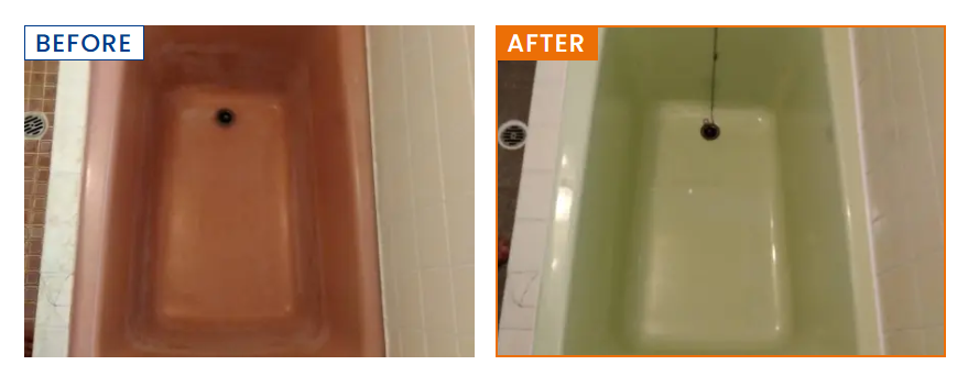 - 仕上げと引渡し: 翌朝に軽く表面処理後、金具を復元し、コーキングを丁寧に施工。養生を剥がして清掃完了し、当日夕方から使用OK。底面の補修箇所も美しく再生されます。
