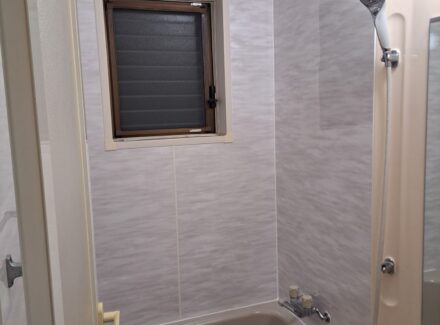 床タイルと壁タイルから床シートと壁パネルへのリフォームを行いました。