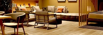 自然の木のあたたかみを感じる木目調の床タイルです。優れた防汚機能を持つため、ワックスメンテナンス不要でキレイが持続し、ランニングコストも削減できます。