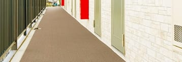 完全屋外に対応した防滑シート。表面に施された凹凸により滑りにくく安全で、解放廊下やバルコニーに最適です。